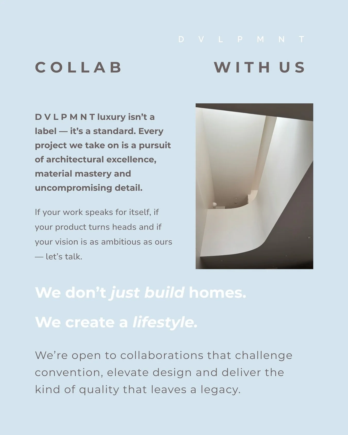 D V L P M N T creates homes that are not only visually captivating but also push the boundaries of design, seamlessly blending aesthetic appeal with practical functionality for everyday life.