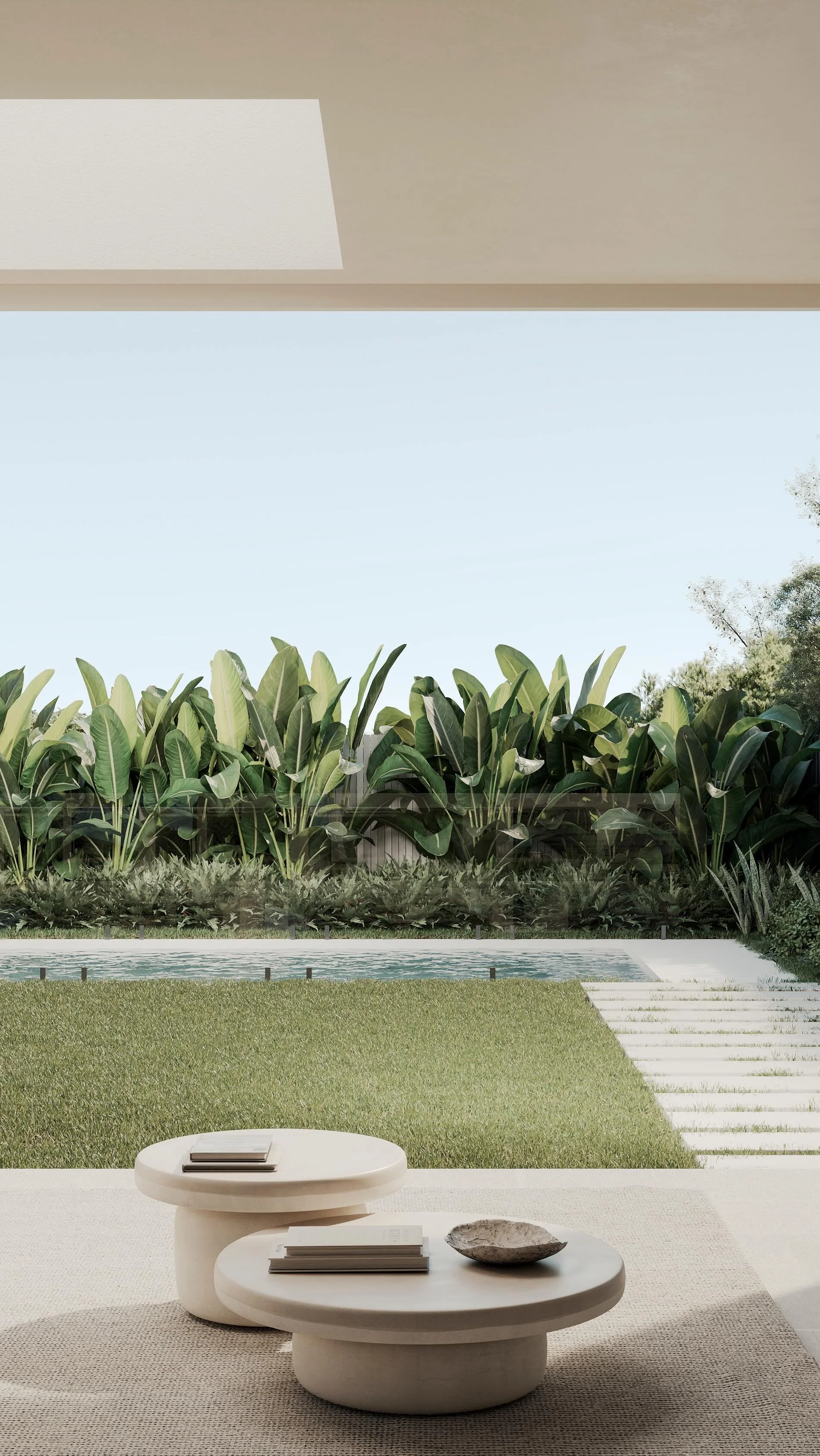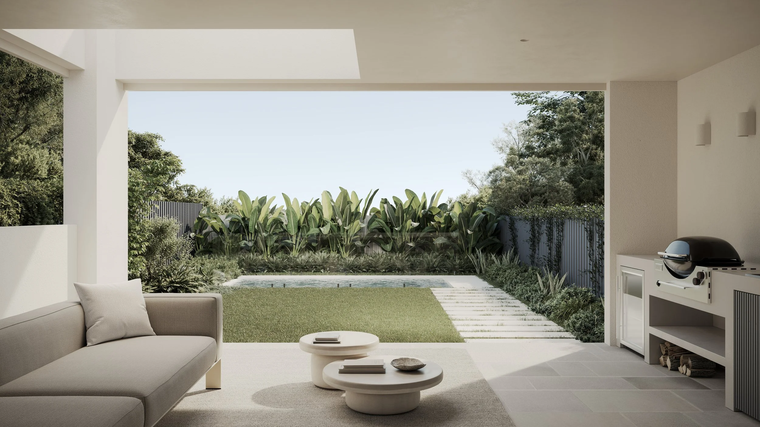 N I V A Y A is a thoughtfully considered concept — a dual occupancy, private oasis that embraces Scandinavian coastal minimalism through a palette of soft white and grey concrete, clean architectural lines and a calm, tonal aesthetic.