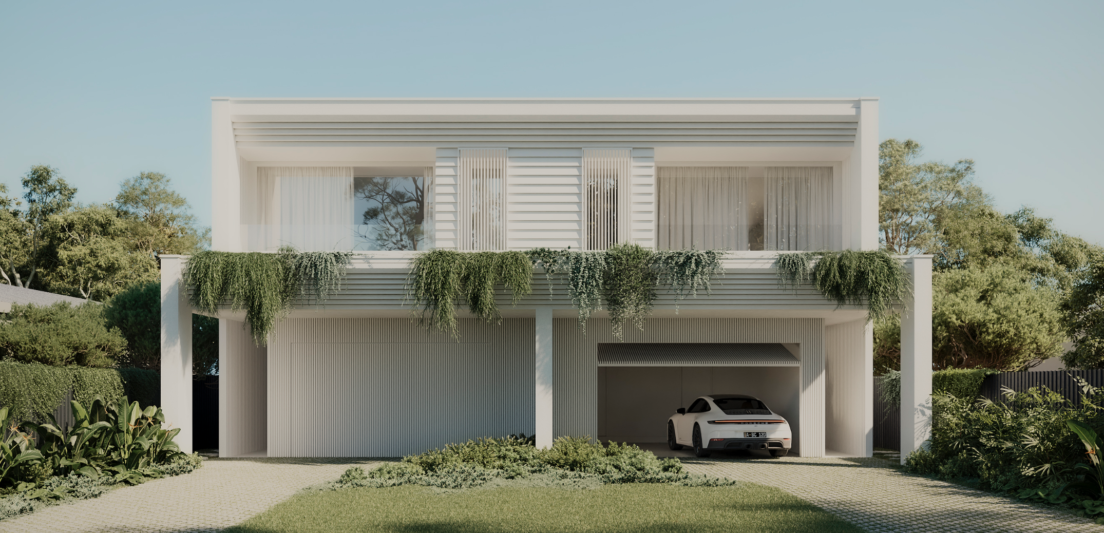 N I V A Y A is a thoughtfully considered concept — a dual occupancy, private oasis that embraces Scandinavian coastal minimalism through a palette of soft white and grey concrete, clean architectural lines and a calm, tonal aesthetic.