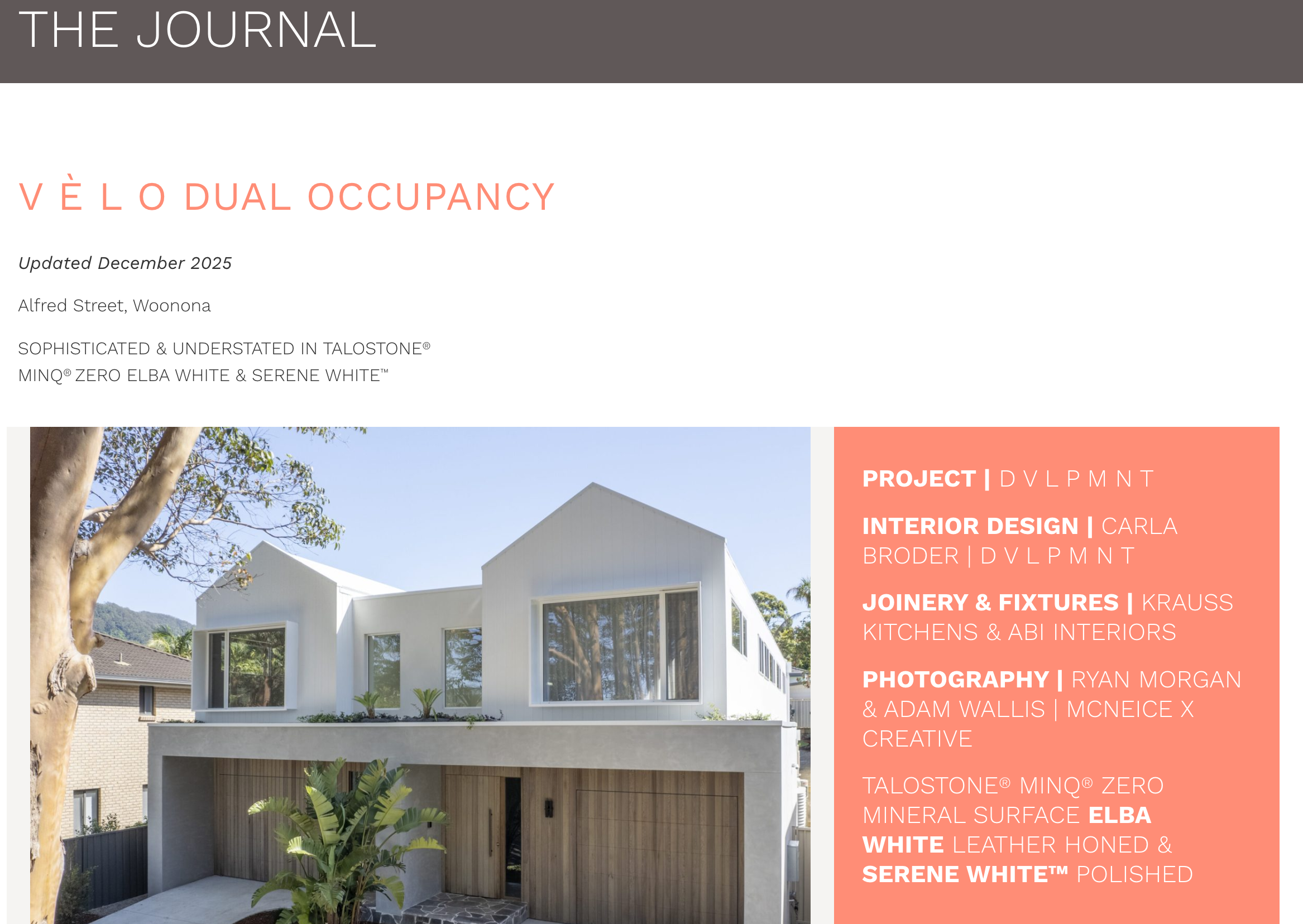 V È L O project on Alfred Street, Woonona featured in Talostone’s The Journal.